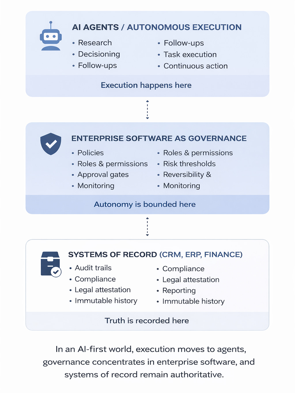 In an AI-first world, software is less about guiding humans through workflows and more about governing autonomous actions.