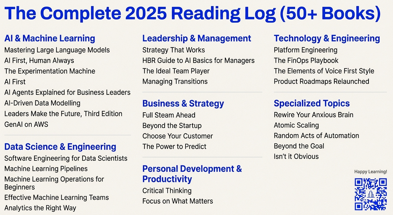 I started my 2025 with a simple goal for my reading list. To get better about the world AI is creating. I wanted to know how the technology works, how to build with it, and, just as importantly, how to be a better leader and person while doing so.